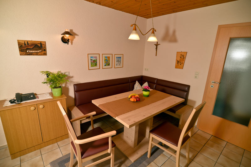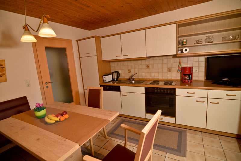Fliesenboden ausgestattet und verfügen über Außenrollos. In der Wohnküche finden Sie eine gemütliche Sitzecke sowie eine Küchenzeile mit Geschirrspüler, 4-Plattenherd mit Backofen, Kühlschrank mit Gefrierfach, Kaffeemaschine, Wasserkocher und Toaster. Außerdem ist die Ferienwohnung mit Flachbild-TV, Selbstwähltelefon und WLAN ausgestattet.