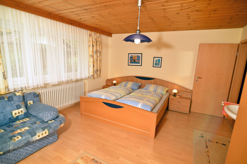 Im Untergeschoss erwartet Sie eine 55 m² große Wohnung mit Zentralheizung. In unserer modern eingerichteten Ferienwohnung stehen Ihnen zwei Schlafzimmer, jeweils mit eigener Waschgelegenheit, zur Verfügung, sowie Dusche und WC.